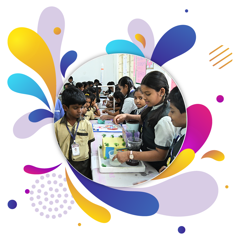 • The school offers a variety of co-curricular activities to help students develop their talents and skills. Qualified teachers guide students in carnatic singing, dance, drawing, art & craft and theatre. A special Learning Theatre is set up where students practice and perform class-wise shows. Pre-KG to Grade 8 students regularly take part in these stage activities.